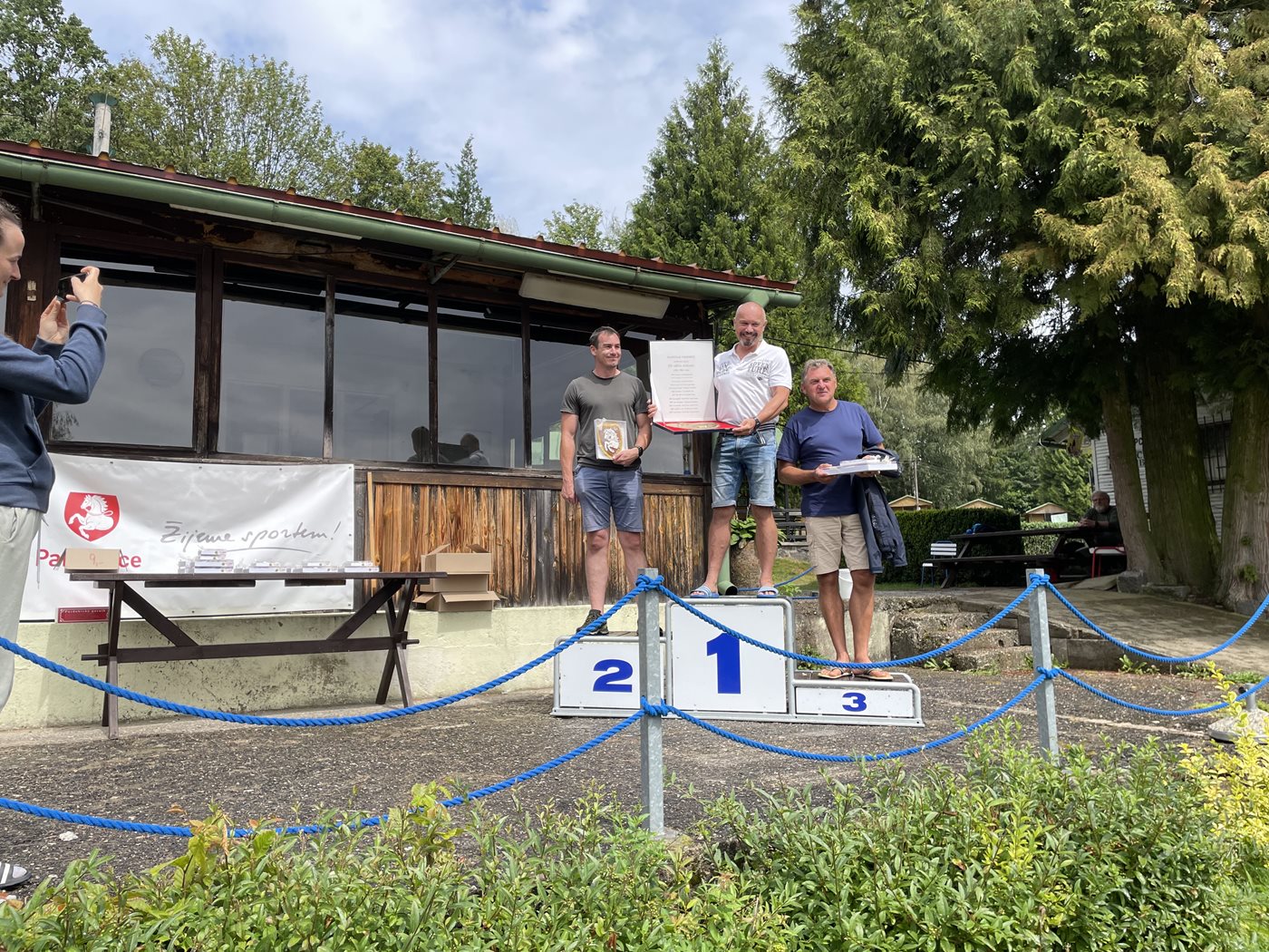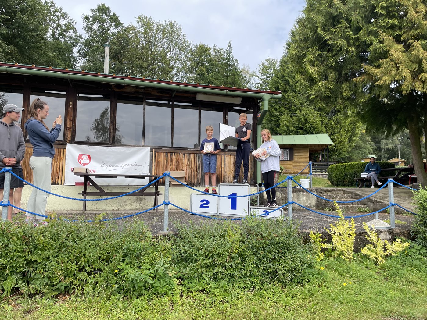 64. ročník závodu O Štít města Pardubic se konal o víkendu 3. 8. - 4. 8. na Seči. Na startu se sešlo celkem 17 lodí - 5 Finn, 4 RsFeva, 4 Optimist, 3 RsAero a 1 RsVareo. I když předpověď byla celkem příznivá, vítr tentokrát chyběl. V sobotu se povedlo odjet pouze dvě rozjížďky za slabého nárazového SZ větru o síle 2 - 3 m/s, ale odpoledne se vyjasnilo a vítr ustal zcela. V neděli pak sice foukal stálý S vítr, ale o síle kolem 1,5 m/s, což už na závodění nebylo. Sobotní mezivýsledky se tak staly i výsledky konečnými.