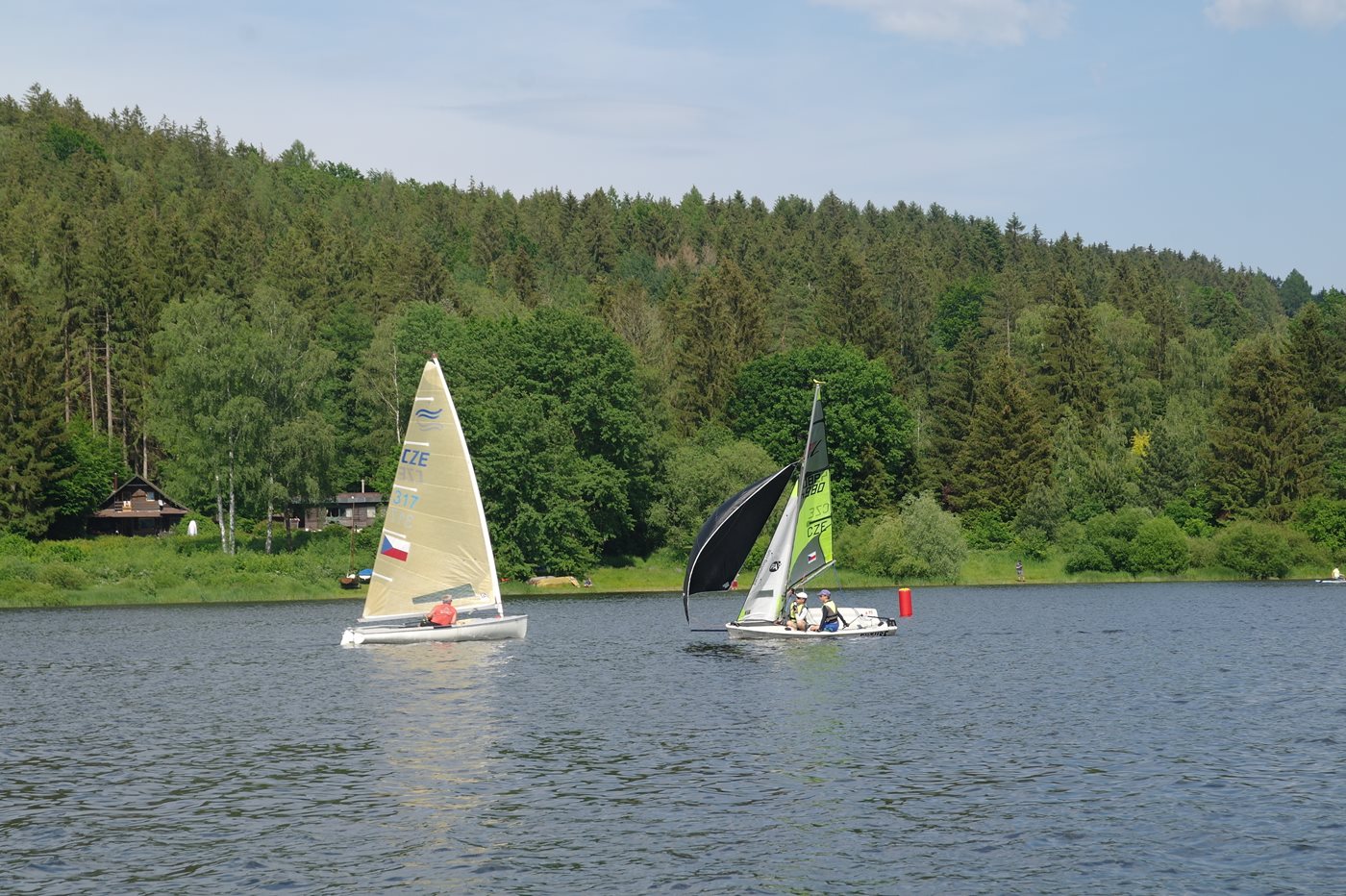 Sobotní dopoledne se neslo v čekání na vítr, který nakonec přišel až kolem 14h. První rozjížďka se jela v zadní části jezera, další dvě se potom jely v obvyklém místě uprostřed jezera, Se závoděním se v sobotu končilo až kolem 18h.