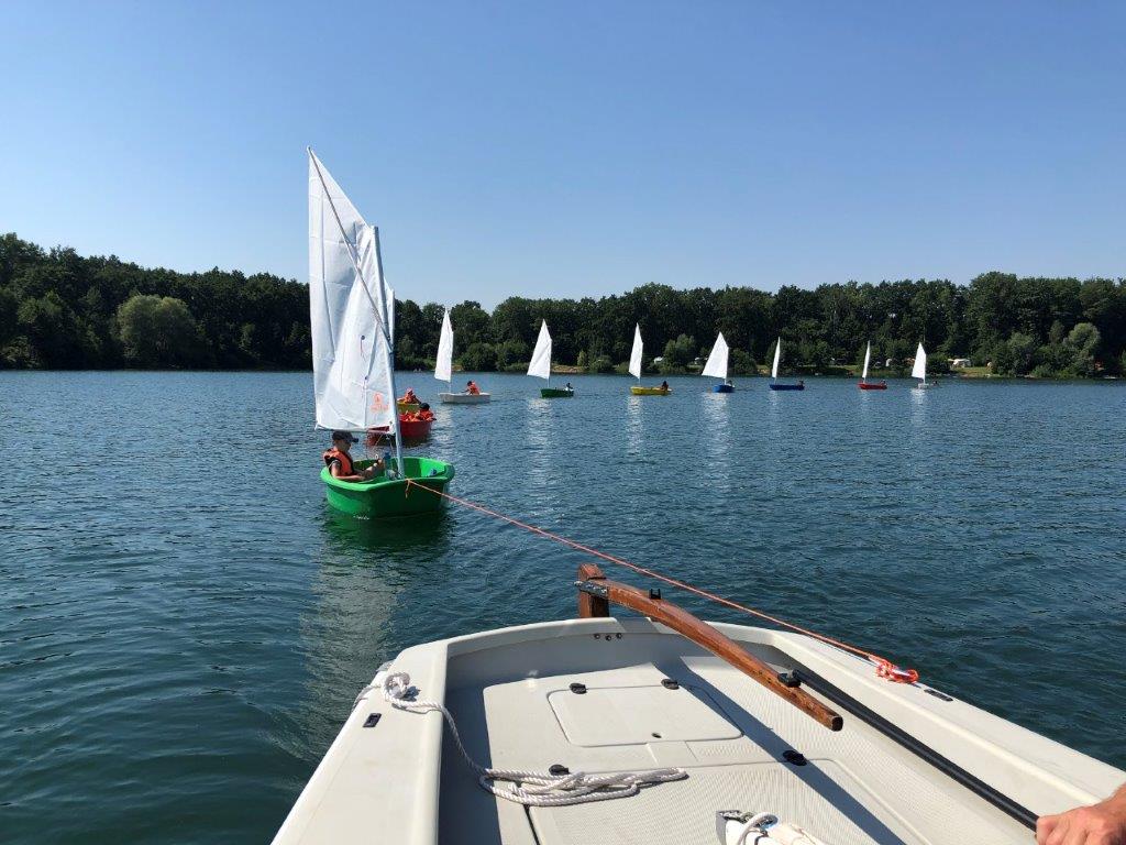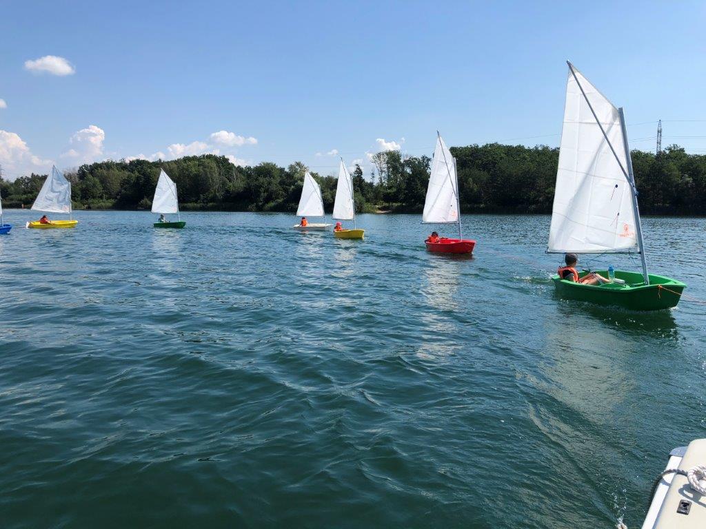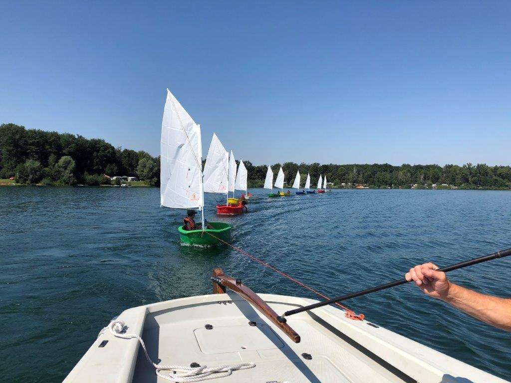 I p5i nedostatku větru se závodníci seznámili s funkcí kormidla (bez piny). Jezdili v závěsu a poté 10 koleček vlevo a 10 vpravo. Při jízdě v uzavřeném kruhu může trenér uvnitř kruhu všem na blízko poradit jak